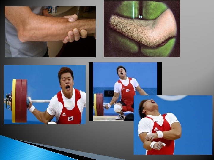 Injury Prevention Acute injuries usually occur from trauma or falling Wear protective padding to reduce the force of a blow Learning how to fall correctly Chronic injuries are very common in the elbow, forearm and wrist Limit # of repetitions throwing or hitting a tennis ball Make sure of proper mechanics Maintain appropriate strength and endurance levels Stretch to warm up & stretch to cool down Don’t overlook chronic injuries. REST if needed!
