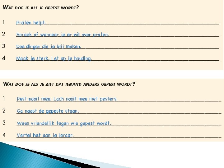 Groepswerk � 1) Kranten zijn nodig om meer te weten. Ze geven een duidelijke uitleg. � 2) Je moet op elk moment op Twitter en Facebook kunnen gaan kijken. � 3) Je hebt altijd e-mail nodig. � 4) Reclame heeft geen invloed op wat ik kies. � 5) Wat je hoort op radio en op tv is bijna altijd helemaal juist. � 6) Het internet is veilig. TAAK: 1) Argumenten voor of tegen de stelling noteren onderaan p. 3 in je werkboek. 2) Opdrachten p. 3 in je werkboek oplossen.