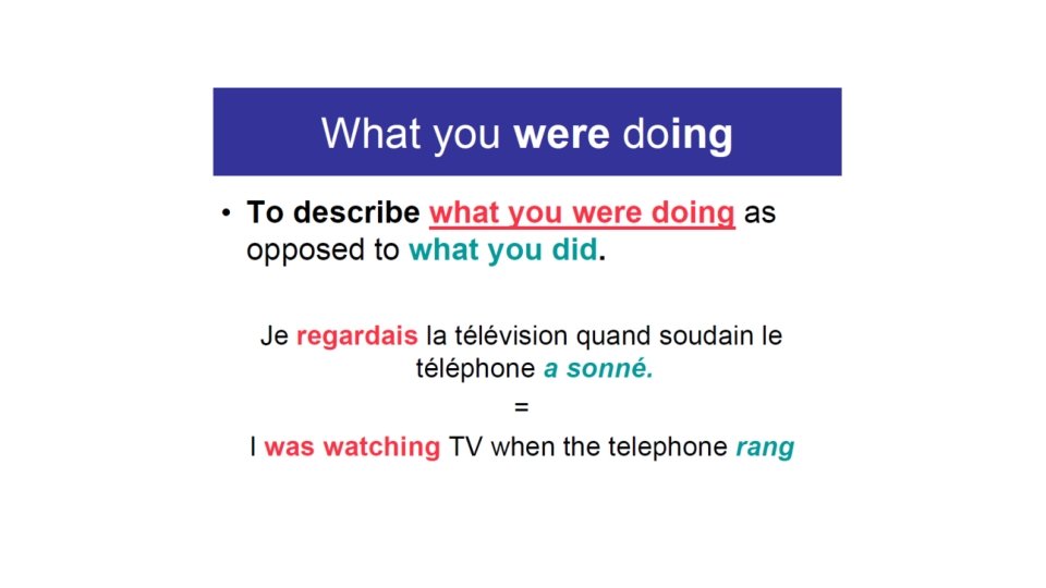 • • Call into Zoom. Write the date and title in your book. Label all tasks and you mark any work as requested. Extension work is at the end of the lesson, you should spend the usual lesson time on French today. Homework 1) Use the slides at the end to revise the Imperfect Tense 2) Complete the Languagenut games to check your understanding of the imperfect tense. Mrs Getty jgetty@ttsonline. net