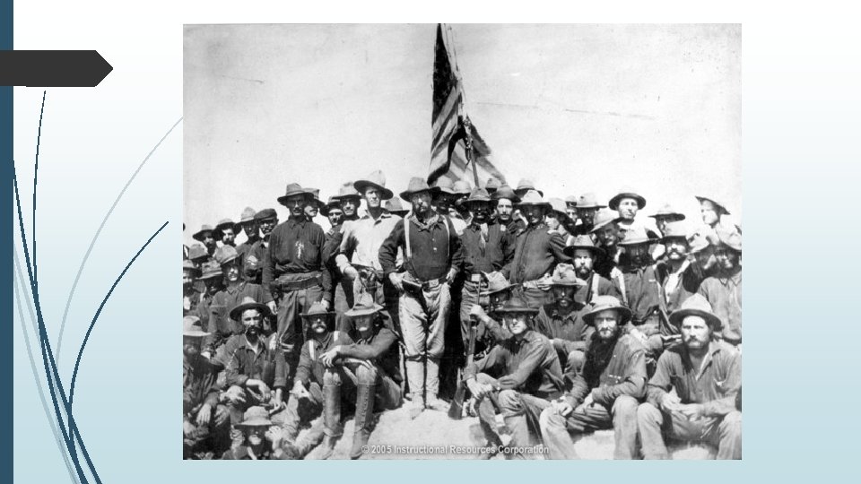 Spanish American War 1898; he left his job as Ast. Sec. of the Navy to fight the Spanish. Lt. Colonel of volunteer cavalry unit “Rough Riders” Led charges on San Juan Hill and Kettle Hills in Cuba War hero. Posthumously awarded Medal of Honor in 2001