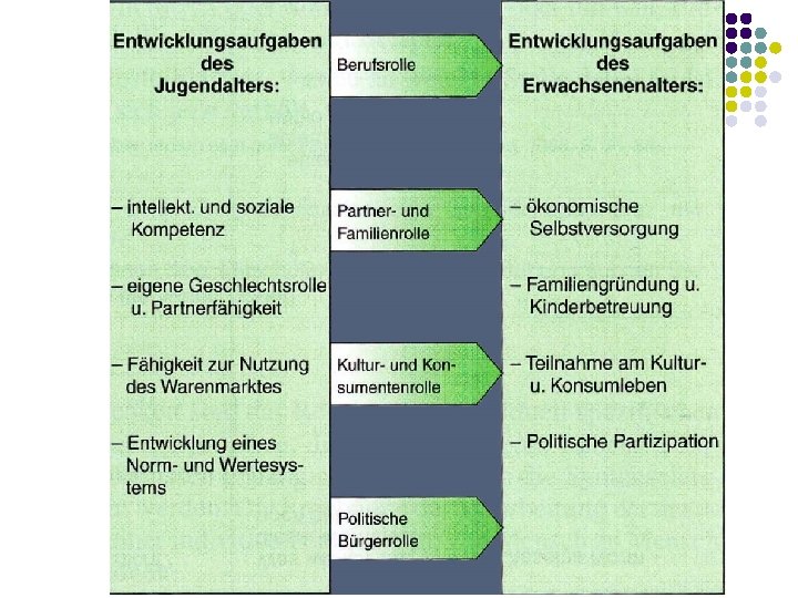 Jugend- eine eigenständige Lebensphase? • Gleichzeitig: unselbstständige & selbstständige Handlungsanforderungen • Kann nicht an ein bestimmtes Lebensalter geknüpft werden (denn: abhängig von verschiedenen Entwicklungsschritten individuell) • Durch Neubestimmung der Persönlichkeitsdynamik: Herausbildung von Fähigkeiten und Fertigkeiten, die für das Erwachsenenleben notwendig sind