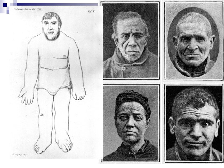 Early Biological Theories ¨ Lombroso studied and measured the bodies of executed and deceased offenders as well as examining living inmates to locate physical differences or abnormalities Claimed to have found a variety of bodily features predictive of criminal behavior § Long arms, large teeth, ears lacking lobes, lots of body hair ¨ Also identified characteristics of particular types of offenders ¨