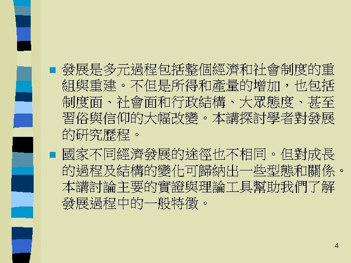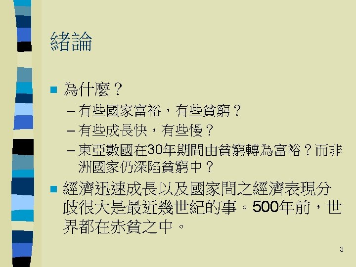 Theories of Development: A Comparative Analysis 第三講:經濟發展理論 Perkins et al. , Economics of Development, 5 th Edition, Ch 2 -3 Michael P. Todaro, Economic Development, 9 th Edition, Ch 3 Chapter 3 1