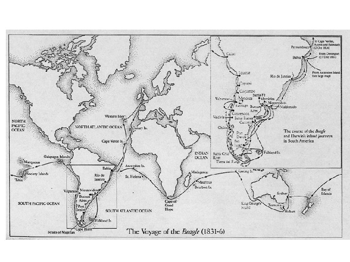 Charles Darwin • 1809 -1882 • Ships naturalist aboard the HMS Beagle collected hundreds of specimens and made extremely detailed observations of the natural world on the 5 year scientific expedition. Upon his return and further study of geology and natural population increase, he developed his Theory of Natural Selection • Wrote (1845) his famous book “On the Origin of Species”