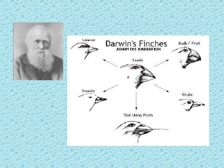 III. Darwin (1831) A. Charles Darwin, a 22 year-old naturalist, traveled on the H. M. S. Beagle in 1831 to chart the coastline of South America and the Pacific Islands. Darwin’s, observations on the Galapagos Islands led him to believe that organisms can change slowly over time (evolve). He initially studied finches and noticed that each finch on each island was slightly different from each other and from those on the mainland. Darwin felt that the finches, because they were isolated from each other on different islands, had the opportunity to develop adaptations (evolve) differently in each region.