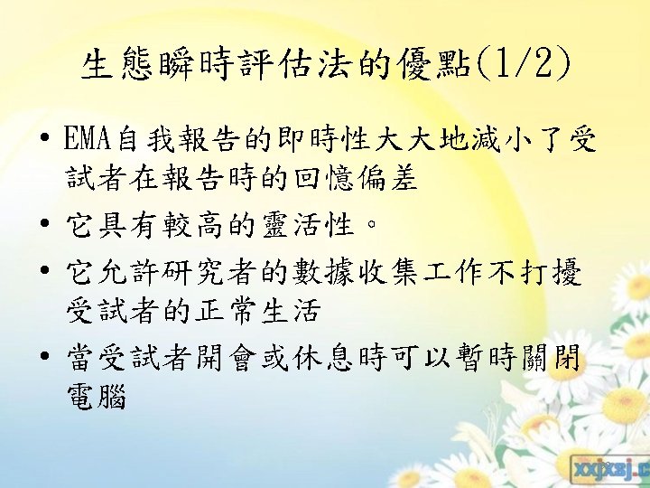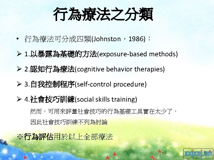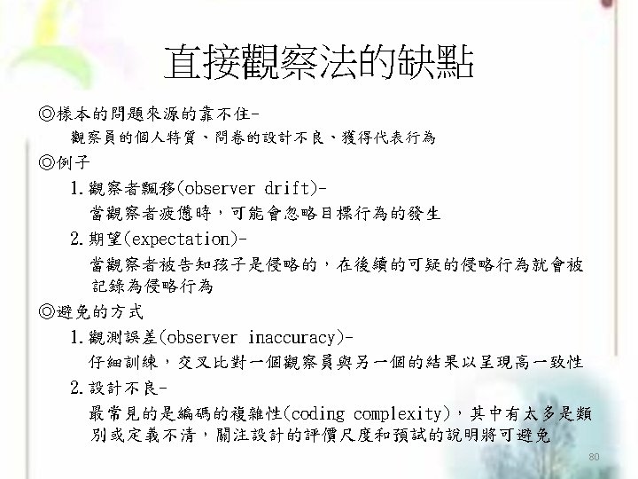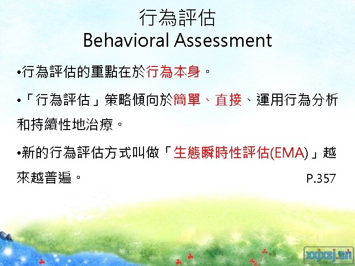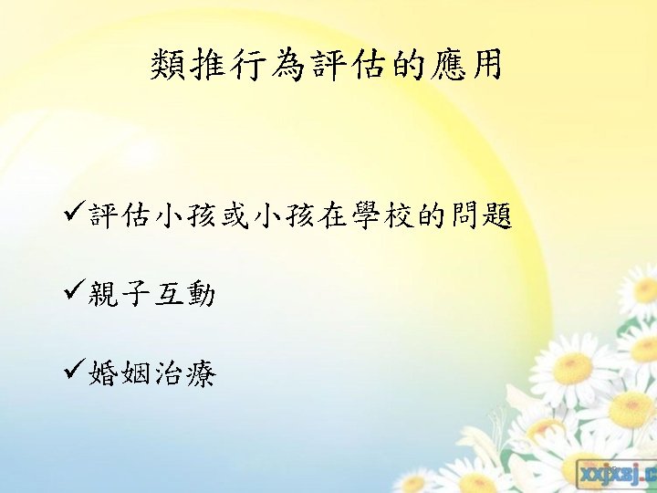 類推的行為評估 ü近似系統性的直接觀察 (The methods of analogue behavioral assessment are closely related to the methods of systematic direct observation) ü在非自然情境 (The main difference has to do with the settings in which the observations occur) (P 368 Section 1) 82