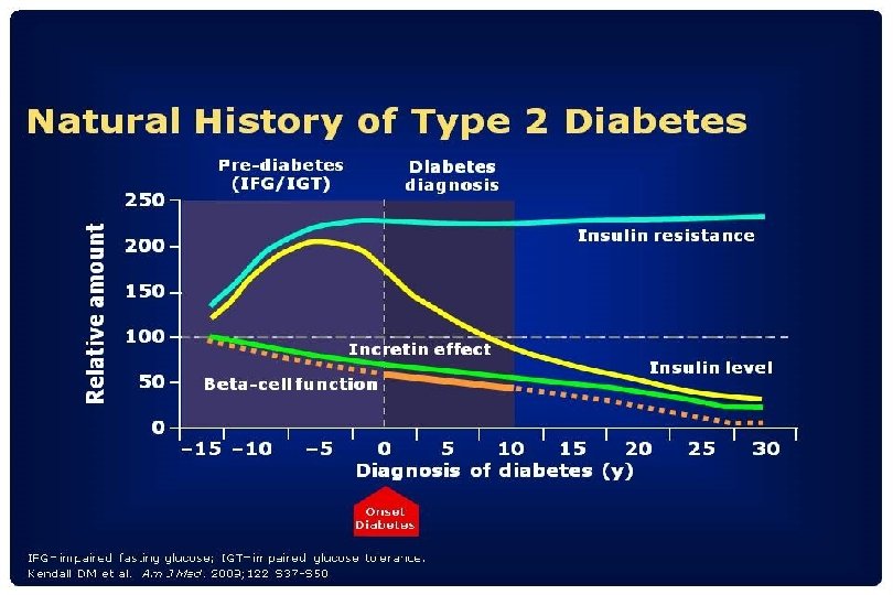 Natural History of Type 2 Diabetes Insulin Secretion Age 0 -15 Genes 15 -40+ 15 -50+ 25 -70+ Envir. + Other Disease Macrovascular Complications Insulin Resistance Obesity (visceral) IR phenotype Poor Diet Inactivity Atherosclerosis obesity hypertension HDL, TG, HYPERINSULINEMIA Disability MI CVA Amp Endothelial dysfunction pp>7. 8 PCO, ED IGT – OMINOUS OCTET Type II DM 8 mechanisms of hyperglycemia Beta Cell Secretion Eye Nerve Kidney Risk of Dev. Complications DEATH ETOH BP Smoking Blindness Amputation CRF Disability Microvascular Complications