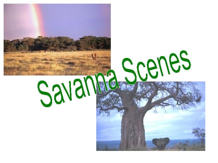 • Largest savannas are found in Africa • There are only a few trees on the savanna • Why don’t a lot of trees grow? • Savanna does not get a lot of rain • People set the grass on fire to stop trees from growing • Animals eat the trees before they can start growing tall