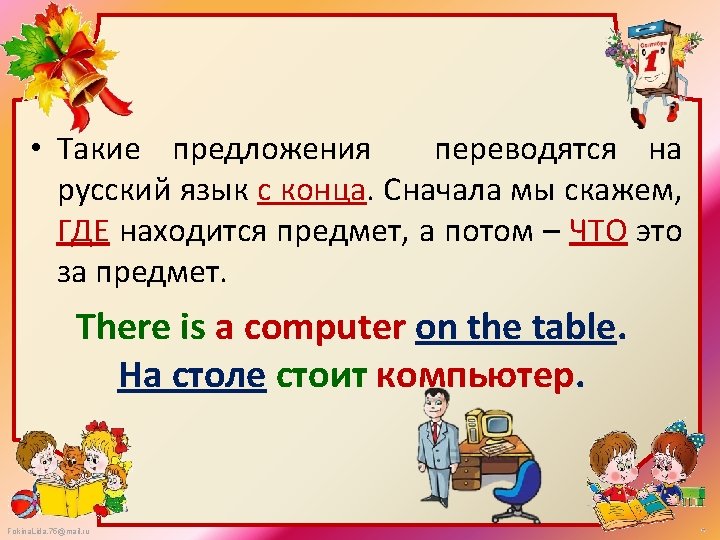 There is There are what where There is a computer There are pupils Fokina. Lida. 75@mail. ru on the table. in the class.