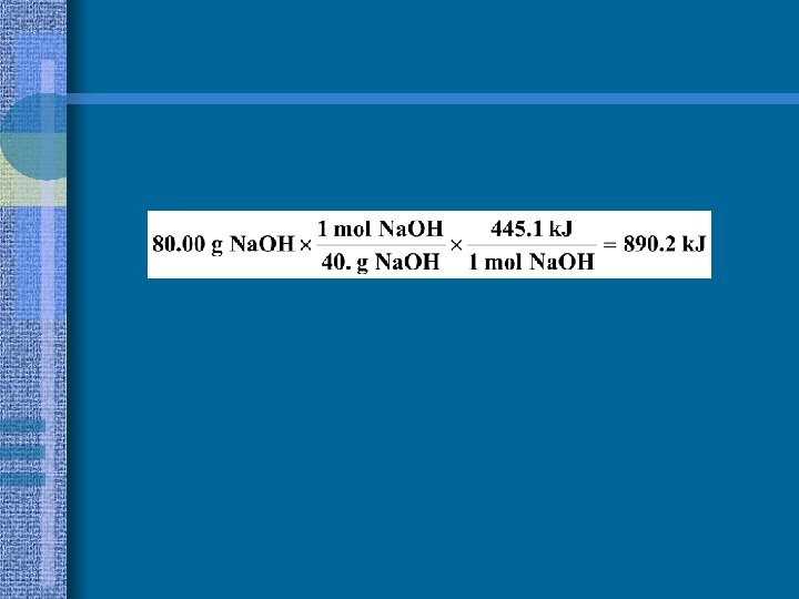 l If the molar heat of solution of Na. OH is -445. 1 k. J/mol, how much heat (in k. J) will be released if 80. 00 g of Na. OH are dissolved in water?