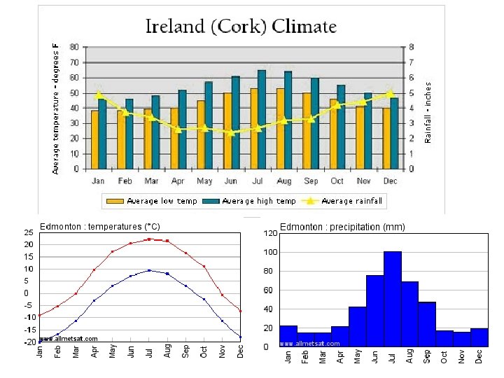Marine Climate Continental Climate Cork Edmonton Same insolation angle, different climate due to proximity to water and the warming effect from the Gulf Stream http: //www. sampleireland. com/weather-in-ireland-year-round. html