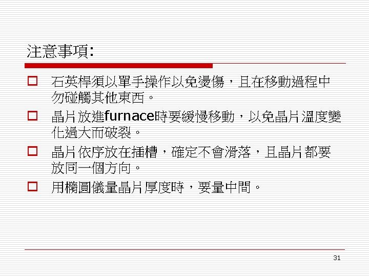 半導體專題實驗 實驗四 氧化層之成長與厚度量測 Thermal oxidation of Si and oxide thickness measurement 1