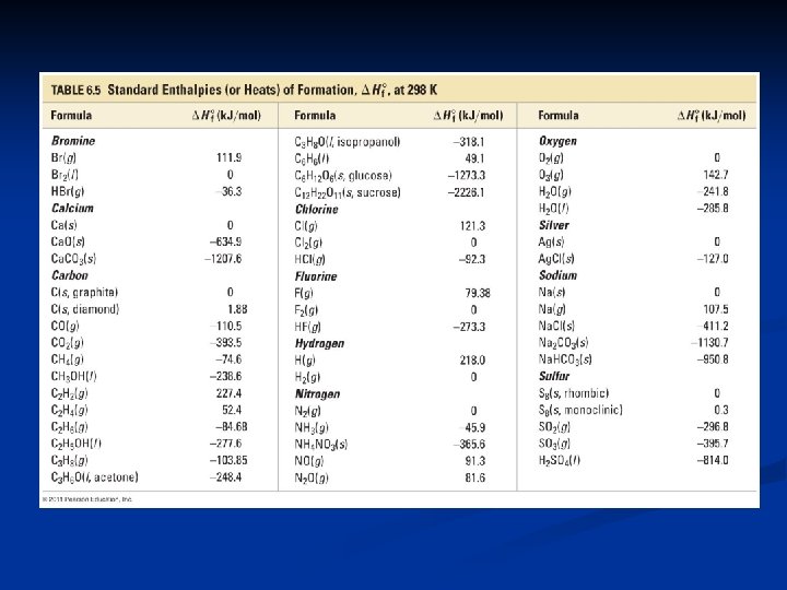 Standard Conditions n Standard conditions are indicated using a degree symbol ( o ). Standard conditions for thermochemical data differ from the standard conditions used in the gas laws. 1. All gases have a pressure of exactly 1 atm. 2. Pure substances are in the form that they normally exist in at 25 o. C and 1 atm pressure. 3. All solutions have a concentration of exactly 1 M.