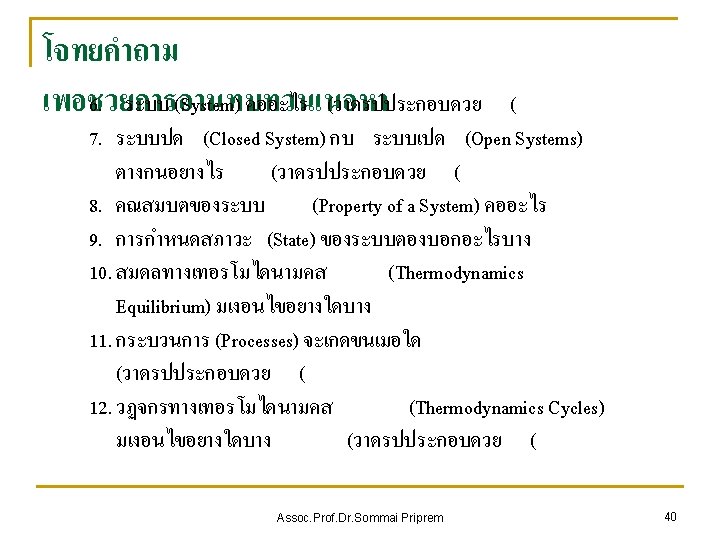Closed System Assoc. Prof. Dr. Sommai Priprem 13