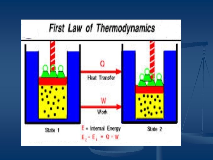 FIRST LAW OF THERMODYNAMICS n n ENERGY CAN NEITHER BE CREATED NOR BE DESTROYED , MAY BE CONVERTED FROM ONE FORM TO ANOTHR. THE TOTAL ENERGY OF AN ISOLATED SYSTEM REMAINS CONSTANT. ON DISAPPEARANCE OF CERTAIN QUANTITY OF ENERGY , AN EQUIVALENT AMOUNT OF SOME OTHER FORM OF ENERGY IS PRODUCED. TO CONSTRUCT A PERPETUAL MACHINE IS IMPOSSIBLE.