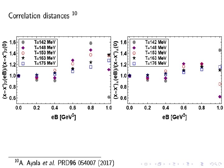 Conclusions The correlation length is an interesting object for analyzing thermomagnetico effects in strongly correlated matter. When the correlation distances increases, the test charges are further apart and correspondingly their interaction becomes weaker. For large temperatures more particles pop up from vacuum contributing to screen the interaction between the test particles