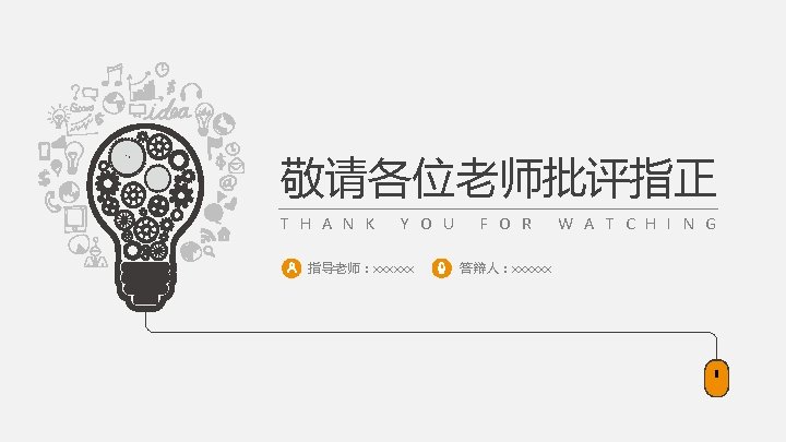 创意灯泡毕业答辩模板 THESIS DEFENSE POWERPOINT TEMPLATE 指导老师:xxxxx 答辩人:xxxxxx