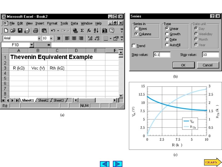 LEARNING EXAMPLE DATA TO BE PLOTTED Using MATLAB to generate and plot data » » » » Rx=[0: 0. 1: 10]'; %define the range of resistors to use Voc=12 -6*Rx. /(Rx+4); %the formula for Voc. Notice ". /" Rth=4*Rx. /(4+Rx); %formula for Thevenin resistance. plot(Rx, Voc, 'bo', Rx, Rth, 'md') title('USING MATLAB'), %proper graphing tools grid, xlabel('Rx(k. Ohm)'), ylabel('Volts/k. Ohms') legend('Voc[V]', 'Rth[k. Ohm]')