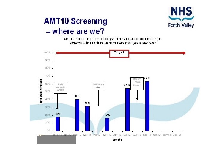 Why Bother? • National Priority • Delirium present in up to 60% patients over 65 with hip fracture • 3 rd busiest ortho unit in Scotland • 380 hip fracture patients/ year • Pressure on beds • Staffing challenges