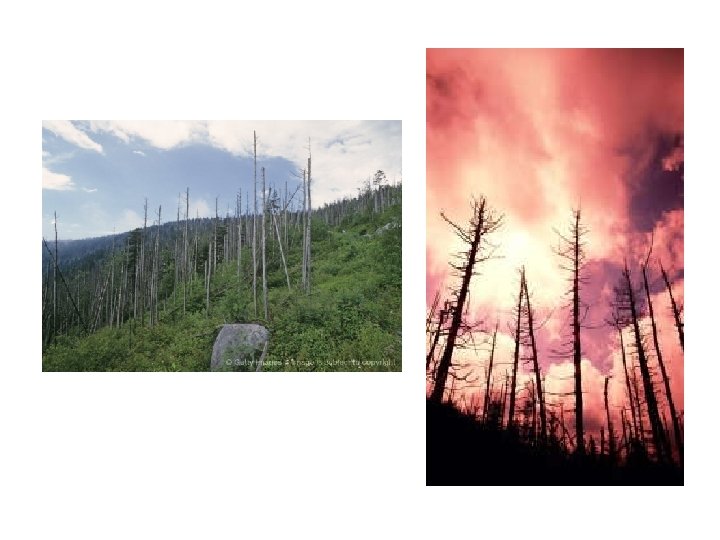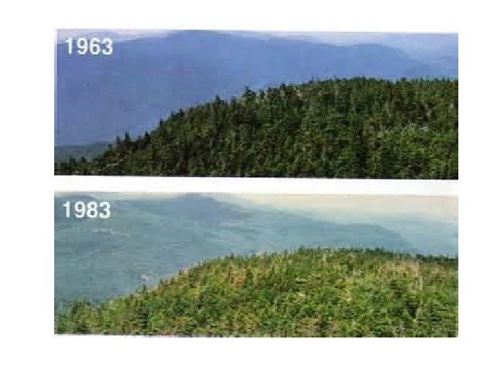 What effect does acid rain have on an ecosystem? • Leaves and needles of plants and trees die and fall off, stopping photosynthesis