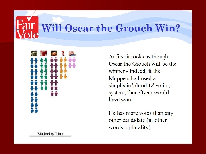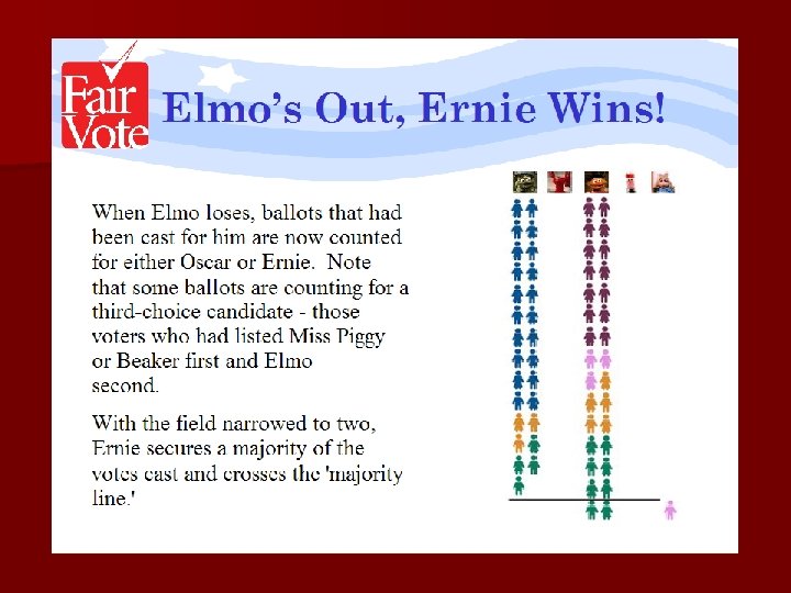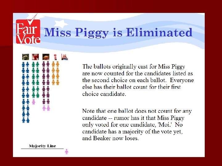 Criticism of IRV n More complex n Requires new voting machinery n Voter fatigue Are reforms like this at odds with third parties? More parties could make it cumbersome and impractical.