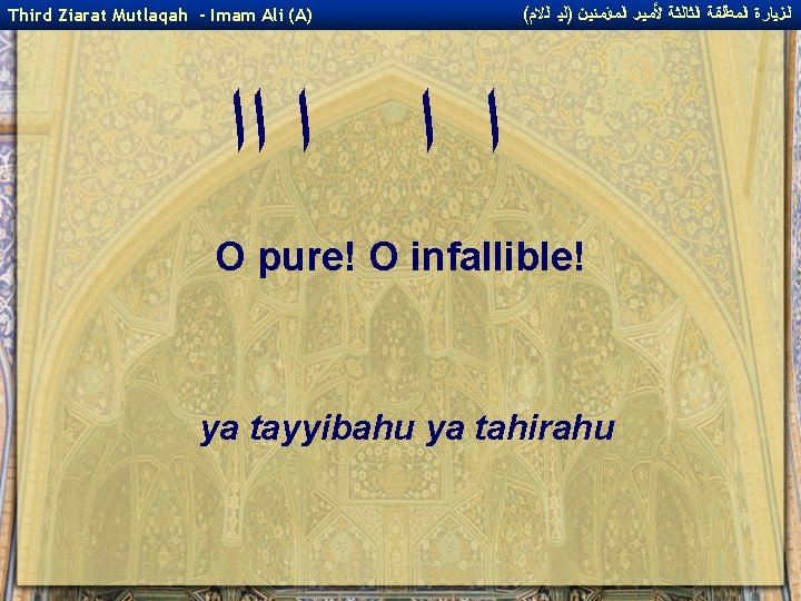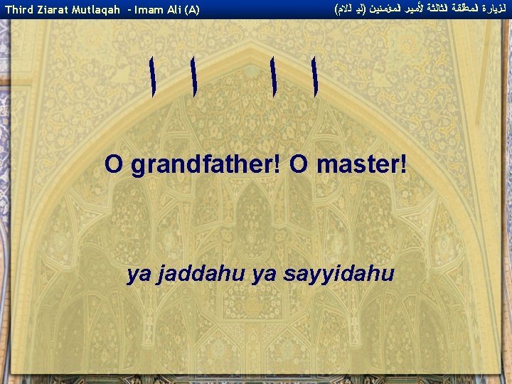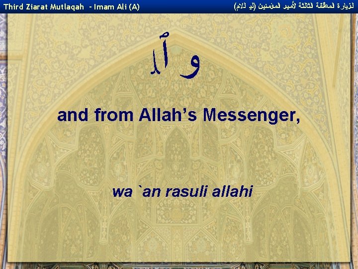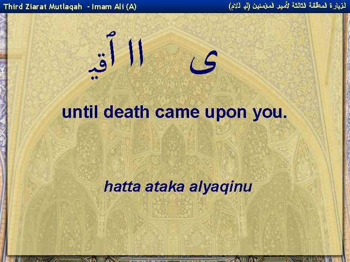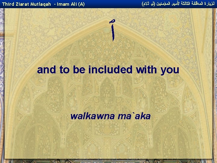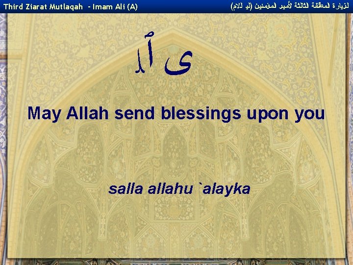 ( ﺍﻟﺰﻴﺎﺭﺓ ﺍﻟﻤﻄﻠﻘﺔ ﺍﻟﺜﺎﻟﺜﺔ ﻷﻤﻴﺮ ﺍﻟﻤﺆﻤﻨﻴﻦ )ﻟﻴ ﺍﻟﻻﻡ Third Ziarat Mutlaqah - Imam Ali (A) ﻯ ﭐﻼ and upon the Imams who came after you! wa `ala al-a'immati min ba`dika