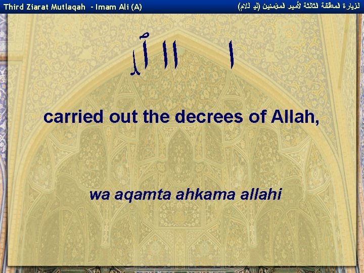 ( ﺍﻟﺰﻴﺎﺭﺓ ﺍﻟﻤﻄﻠﻘﺔ ﺍﻟﺜﺎﻟﺜﺔ ﻷﻤﻴﺮ ﺍﻟﻤﺆﻤﻨﻴﻦ )ﻟﻴ ﺍﻟﻻﻡ Third Ziarat Mutlaqah - Imam Ali (A) ﻭ ﭐﻠ never exceeded the limits of Allah, wa lam tata`adda hududa allahi