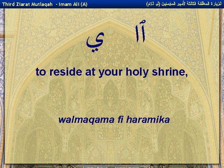 ( ﺍﻟﺰﻴﺎﺭﺓ ﺍﻟﻤﻄﻠﻘﺔ ﺍﻟﺜﺎﻟﺜﺔ ﻷﻤﻴﺮ ﺍﻟﻤﺆﻤﻨﻴﻦ )ﻟﻴ ﺍﻟﻻﻡ Third Ziarat Mutlaqah - Imam Ali (A) ﺍﭐ attended to that which was kept with you, wa ra`ayta ma istuhfizta