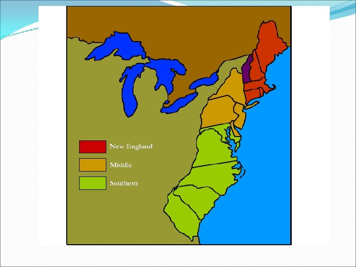 Middle Colonies - New York, Pennsylvania, New Jersey, Delaware Climate/Geography - The Middle colonies spanned the Mid-Atlantic region of America and were temperate in climate with warm summers and cold winters. . This area had good coastal harbors for shipping. Climate and land were ideal for agriculture. These colonies were known as the "breadbasket" because of the large amounts of barley, wheat, oats, and rye that were grown here. Religion - Religion in the Middle Colonies was varied as no single religion seemed to dominate the entire region. Religious tolerance attracted immigrants from a wide-range of foreign countries who practiced many different religions. Quakers, Catholics, Jews, Lutherans and Presbyterians were among those religious groups that had significant numbers in the middle colonies. Economy - The Middle Colonies enjoyed a successful and diverse economy- largely agricultural farms and big cities such as Philadelphia and New York were major shipping hubs.