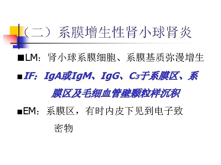 This is Berger's disease, or Ig. A nephropathy. The Ig. A is deposited mainly in mesangium, which then increases mesangial cellularity as shown at the arrow. Patients with Ig. A nephropathy usually present with hematuria.