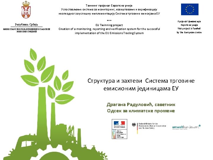 УСПОСТАВЉАЊЕ СИСТЕМА ТРГОВИНЕ ЕМИСИЈАМА У СРБИЈИ This project is funded by 9/9/2020 The European Union REPUBLIC OF SERBIA MINISTRY OF AGRICULTURE AND ENVIRONMENTAL PROTECTION 24