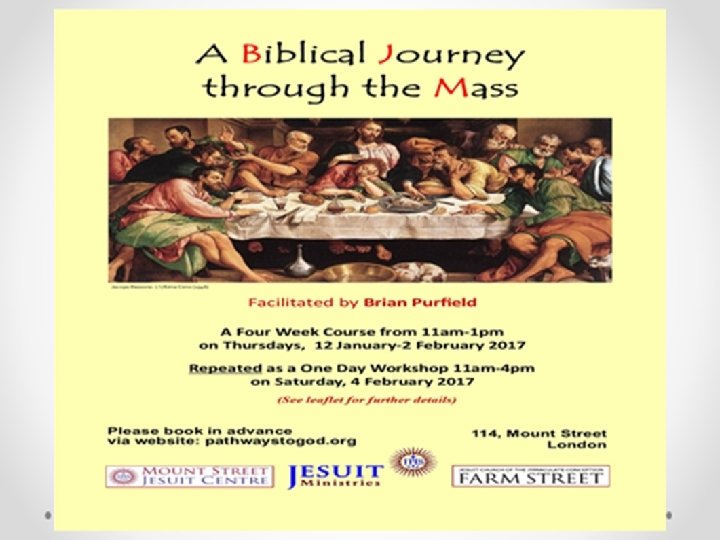 FURTHER READING • Jungmann, Josef. The Mass: An Historical, Theological and Pastoral Survey. Translated by Julian Fernandes. Collegeville, MN: The Liturgical Press, 1976. • Pitre, Brant, Jesus and the Jewish Roots of the Eucharist: New York: Doubleday, 2011. • Sri, Edward. A Biblical walk Through the Mass. Understanding What We Say and Do in the Liturgy. West Chester, PA: Ascension Press, 2011.