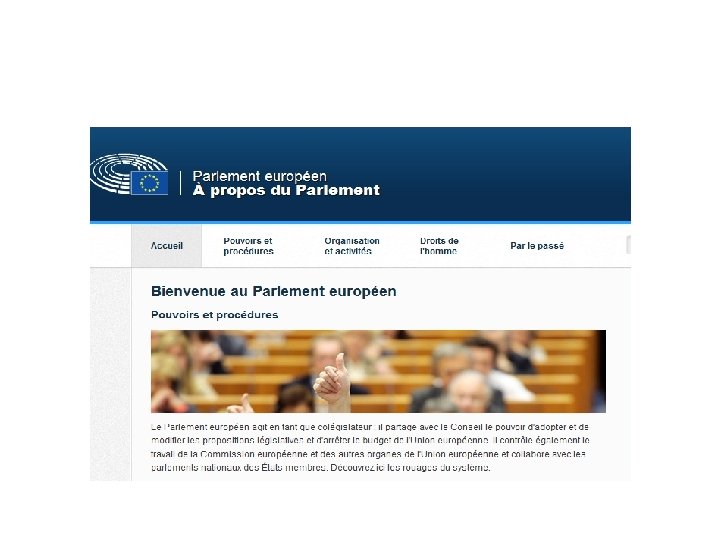 Le Parlement Européen Le Parlement européen est l'organe parlementaire de l'Union européenne élu au suffrage universel direct. Président du Parlement Martin Schulz Il partage avec le Conseil de l'Union européenne le pouvoir législatif de l'Union européenne. (Règlements et Directives) Le Parlement est composé de 751 députés européens, qui représentent 375 millions d’électeurs provenant de 28 États;
