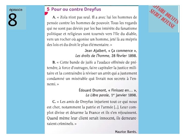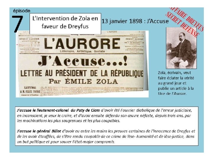 III. La IIIe République résiste aux crises -L’affaire Dreyfus porte atteinte aux valeurs de la république et divise profondément les français. Des intellectuels comme Zola se sont mobilisés pour dénoncer l’antisémitisme et l’injustice. (Antisémitisme : hostilité et rejet à l’égard des juifs) Cependant en 1914, le régime républicain n’est plus contesté. http: //daniele-corneglio. fr/