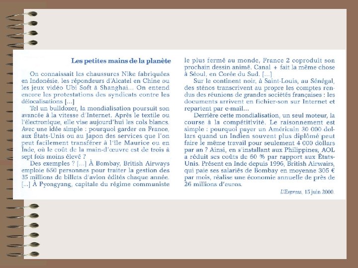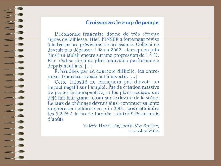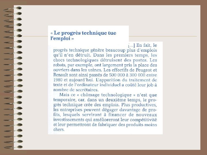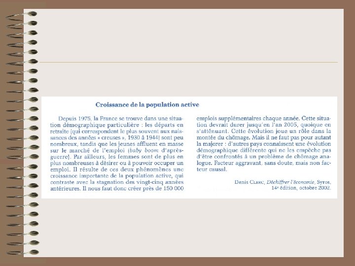 III. LES EXPLICATIONS DU CHÔMAGE • À partir de vos connaissances, du manuel et des documents ci-joints, vous rédigerez un développement structuré d’une dizaine de lignes en suivant le plan suivant : En introduction, vous définirez ce qu’est un chômeur. Dans une 1ère partie, vous mettrez en évidence les causes principales du chômage à caractère économique. Dans une 2ème partie, vous mettrez en évidence les causes principales du chômage à caractère démographique et social. En conclusion, vous désignerez les 2 secteurs d’activité où semble se créer durablement le plus d’emplois et les 2 secteurs en perte de vitesse. Donnez une explication possible de cette mutation.