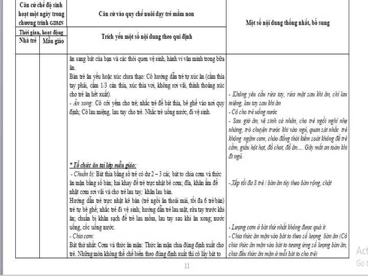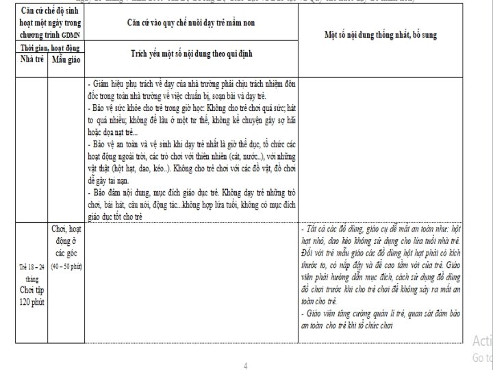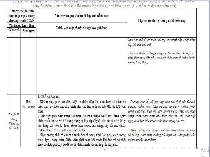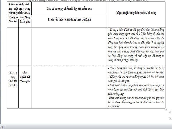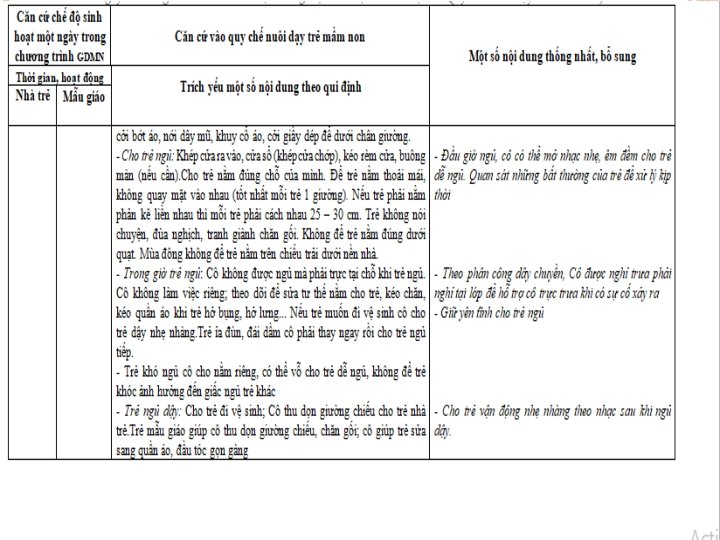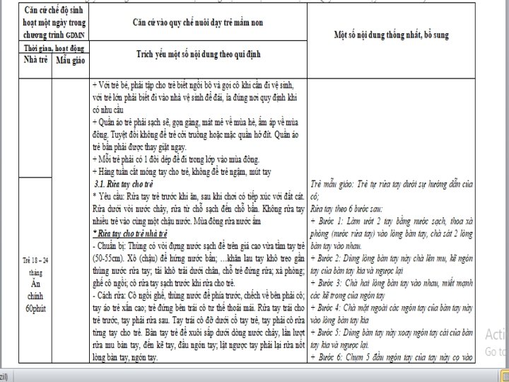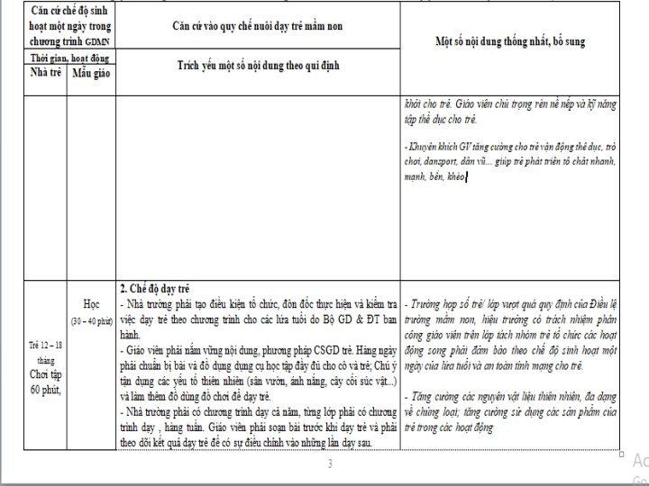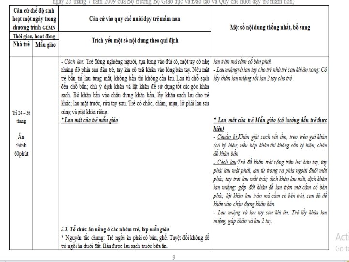 MỘT SỐ NỘI DUNG BỔ SUNG THỰC HIỆN QUY CHẾ CHUYÊN MÔN THEO CHẾ ĐỘ SINH HOẠT MỘT NGÀY TẠI CƠ SỞ GDMN (Ngoài các quy định theo chế độ sinh hoạt một ngày trong chương trình GDMN ban hành kèm Thông tư số 17/2009/TT- BGDĐT ngày 25 tháng 7 năm 2009 của Bộ trưởng Bộ Giáo dục và Đào tạo và Quy chế nuôi dạy trẻ mầm non)