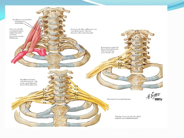 a). boney causes: 1. cervical rib: arise from the last (7 th) cervical vertebrae, may be: a. complete rib, b. incomplete with tapered end, c. just broadening of the transverse process, d. a fibrous band. 2. bifid or flat clavicle. 3. exostosis of the first rib or clavicle 4. dislocated humerus head 5. fracture clavicle