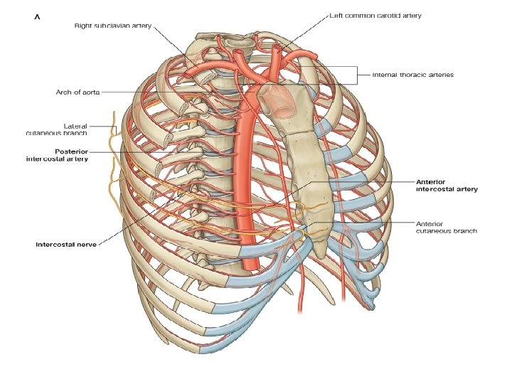 Intercostal vessels: Arteries: Anterior intercostal arteries In each space the arteries are Posterior intercostal arteries arranged in two groups