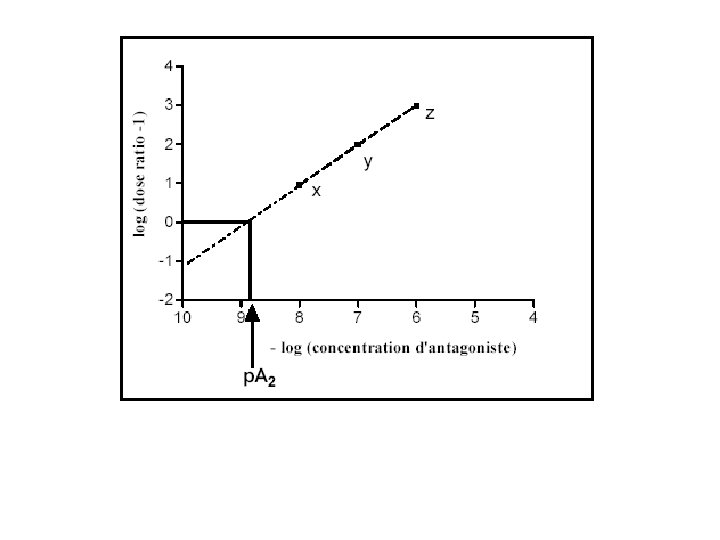 Le paramètre qui permet de quantifier l’effet d’un antagoniste compétitif est le p. A 2. Plus le p. A 2 est élevé plus l’affinité de l’antagoniste pour le récepteur est grande. Exemple: calcul du p. A 2 du propanolol