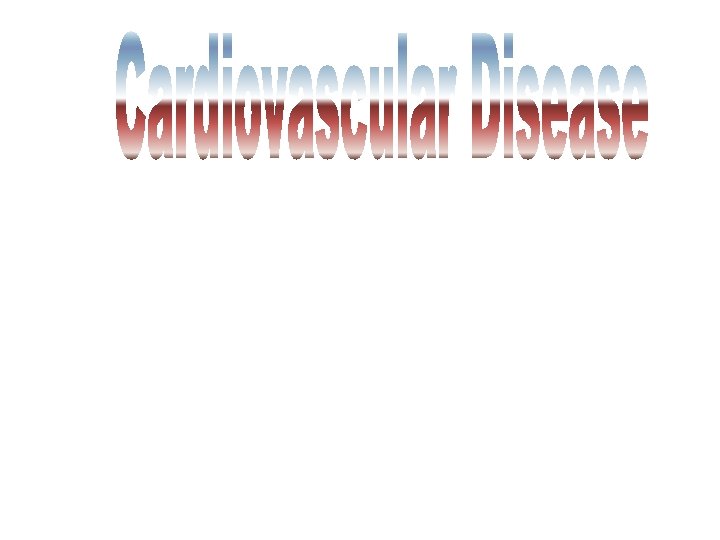Types Of Cardiovascular Disease • Atherosclerosis ----(Plaque ) • Coronary heart disease (CHD) ---Myocardial infarction (MI) or heart attack • Chest pain (angina pectoris) – Ischemia Irregular heartbeat (arrhythmia) » Tachycardia = more than 100 beats/min » Bradycardia = less than 60 beats/min • • Congestive heart failure (CHF) – heart muscle is unable to keep blood circulating normally • Congenital heart disease • Stroke--- Myocardial infarction (MI) • Embolism: blockage of blood vessels