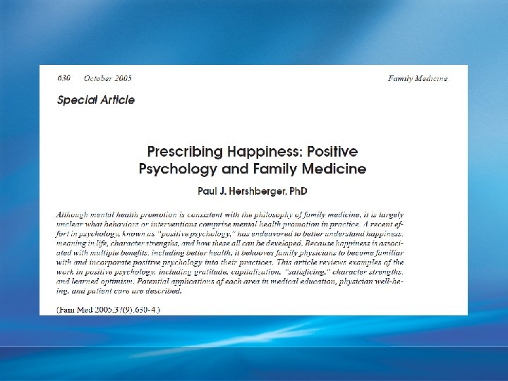 Can Positive Psychology Help Residents? Focus on enhancing well-being & flourishing Meaningful & lasting changes Interventions that could be easily integrated into residency program