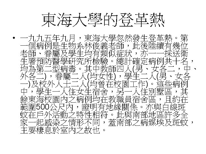 Key Component of Immune Response • • MHC markers(分子標記) Antigen-presenting cells Helper T cells(幫助型T細胞) Effector cytoxic T cells(細胞 殺手) • Natural killer cells(自然殺手) • B cells