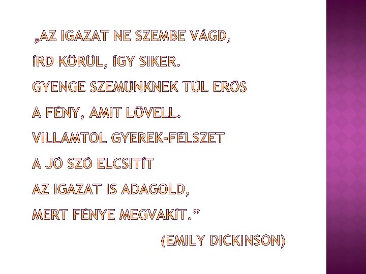 � Dekonstrukció: �Ha ez előző állítás igaz, akkor szabadon értelmezhető minden a „valóságról”, �mindegyik jelentés egyenrangú, számtalan narratíva hozható létre, �de ehhez először „meg kell szabadulni” a nagy narratívától, �dekonstruálni kell, majd elemei újra felhasználhatóakká válnak.