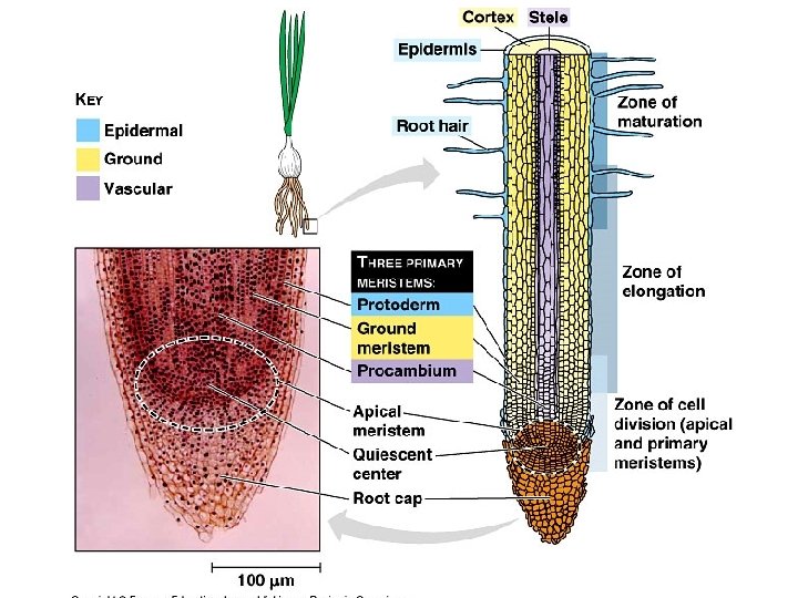 Apical Root Meristem • Apical Root Meristem - Cell growth at the tip of the primary root, required for growth of the plant body • Root Cap – protects the root, these cells are sloughed off and replaced as the root moves through the soil