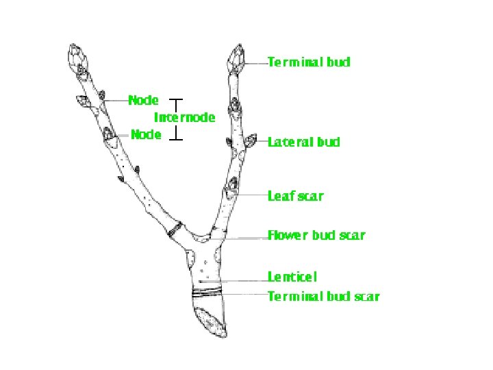 Structures in the Stem • The stem provides structural support for the plants leaves, flowers, and fruits • Nodes - the point where the leaves are connected to the stem • Internodes – stretches of stem between the nodes