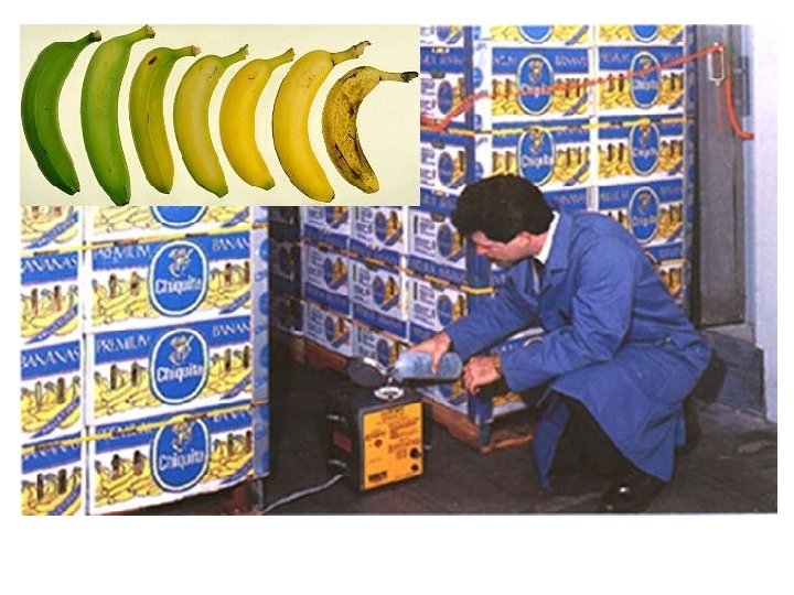 Ethylene • Bananas are picked when they’re green so they are easier to ship. • Once they reach a storage location close to where they’re going to be sold, they are artificially ripened using Ethylene
