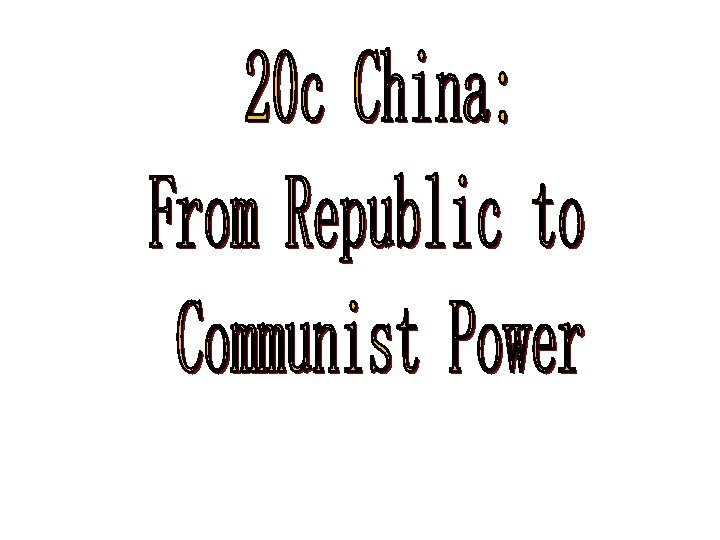 Civil War in China---TEST QUESTIONS • 1927 -1932, 1933 -1937, 1945 -1949 – War between Communists and Nationalists – Communists – Mao Tse-tung (Mao Zedong) – Nationalists – Chiang Kai-shek • War halted 1932 -1933 and 1937 -1945 to fight Japanese aggression • Communists were victorious in 1949 • Nationalists retreated to Taiwan • End of imperialism in China – Hong Kong returned to China in 1997