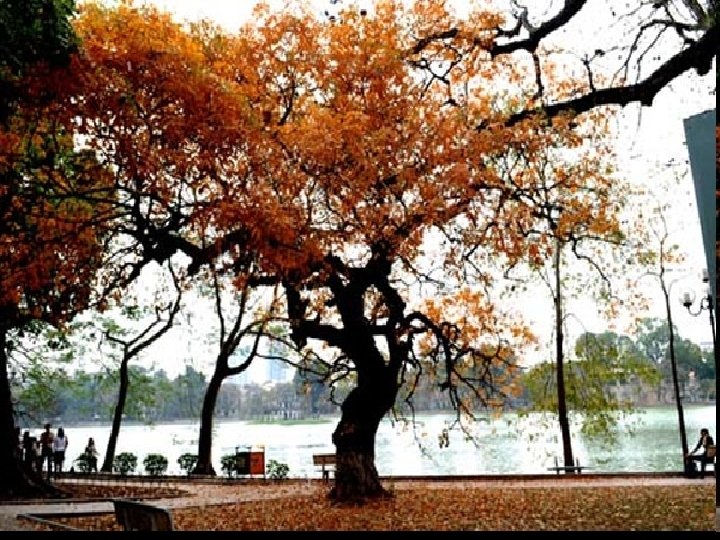 2. Cảnh quan xung quanh hồ - Hồ Hoàn Kiếm là một thắng cảnh nổi tiếng của Hà Nội. Quanh hồ trồng nhiều loại hoa và cây cảnh: những hàng liễu rủ, những cành lộc vừng, những chiếc ghế đá ven hồ, … - Mùa xuân, quanh hồ sống động bởi bao nhiêu loài hoa khoe sắc cùng những lễ hội nhộn nhịp… - Mùa thu, Hồ Gươm rực rỡ sắc vàng của lá, sắc màu mang vị cổ điển của những mùa thu vàng trong tranh Lê-vi-tan…