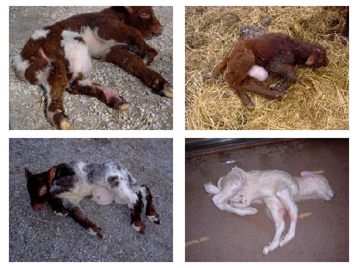 pulmonary hypoplasia with anasarca (PHA) n pulmonary hypoplasia n n anasarca n n n tremendous fluid accumulation in affected calves lack of lymphatic development ¨ absence of lymph duct and nodes, athymia invariably lethal n n absent or near absence of lungs ¨ normal cardiovascular system all near term calves born dead other n early embryonic lethal – increased open rate after confirmed pregnancy