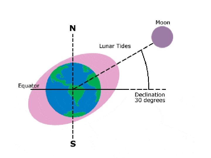 Tidal Forces • Declination of the moon and Sun- Angular distance of the moon and sun above or below the equator • Suns declination varies between 23. 5 degrees north and 23. 5 degrees south • Moons declination varies between 28. 5 degrees north and 28. 5 degrees south • Elliptical Orbits- Earths orbit around sun varies from 92. 2 (perihelion)to 94. 5(aphelion) million miles away • Moons orbit around earth varies between 233, 000 (perigee)and 252, 000 (apogee) thousand miles away